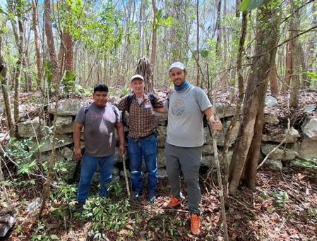 March 2026 found me once again out on the sacbe. This was now my fourth section hiked. I was accompanied once more by my good friend Will. We hired two guides, Aron and Luis Fernando, from the small pueblo of Bolmay with the intent to head East towards Mutul. They advised going West (towards Kauan) instead, so off we went. While a small portion of the hike was along a well-used trail, it ended shortly thereafter, and our pair of guides took turns cutting a path through the dense forest cover. It was slow going. We passed what may have been some ancient platforms at Tzul Chen, but no standing architecture was observed during the hike. One portion of the sacbe was raised above ground level almost 5 feet/1.5 meters in height! The side wall stone work was impressive, and reinforced the notion of the mind-boggling amount of manpower that was involved in the sacbe’s construction. The guides noted that the larger blocks would require four or more laborers each to lift and put into place.