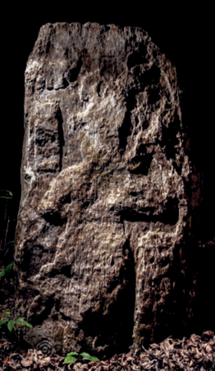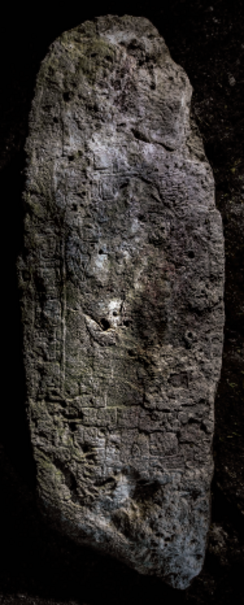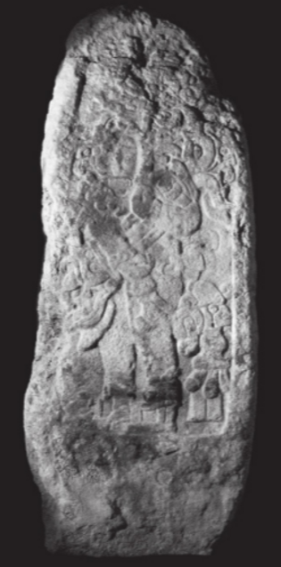 Upakal K’inich, who ruled at minimum from 711-721 CE, appears to have been a prominent ruler whose influence was felt throughout the southern lowlands. Several stelae were erected by him that contain historical information. Stela 10 commemorated a Katun Period Ending on 9.14.0.0.0, 6 Ajaw 13/December 3, 711 CE. A cache was recovered from the corner of the stela consisting of eccentric chert objects and obsidian cores.