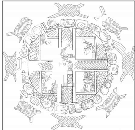 Four sacbeob lead out from the plaza to the four cardinal directions associating this plaza with ritual connotations. A cave has been documented about 1312 feet/400 m southwest of Temple II. Mountains (pyramidal structures), water (aguadas) and caves (the watery underworld) are fundamental elements of Mesoamerican religious beliefs. They symbolize abundance, fertility, and the underworld.